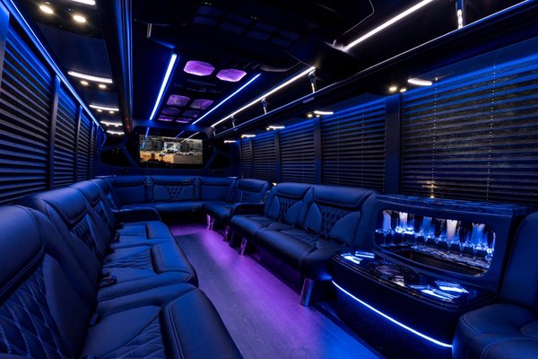 Our premium party buses feature plush leather seating, LED lighting, high-end sound systems,