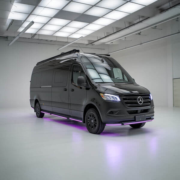 Step inside a luxurious cabin with LED mood lighting, high-end sound system, flat-screen TVs, and plush leather seating
